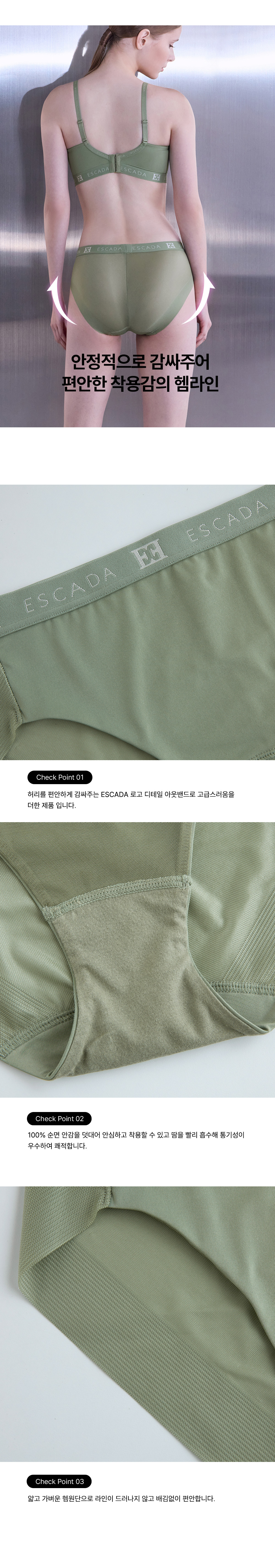 뒷판에 헴원단을 사용해 겉옷에 티가 나지 않는 노라인 제품입니다.