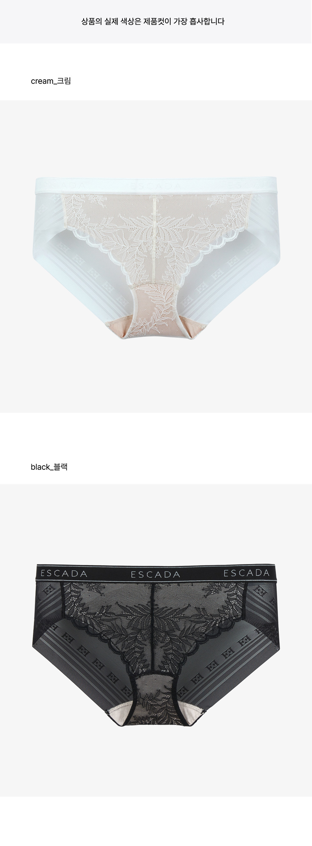 뒷판에 사용된 시스루한 소재감의 ESCADA 로고 헴원단이 포인트이며 겉옷에 티가 나지 않는 노라인 제품 입니다.