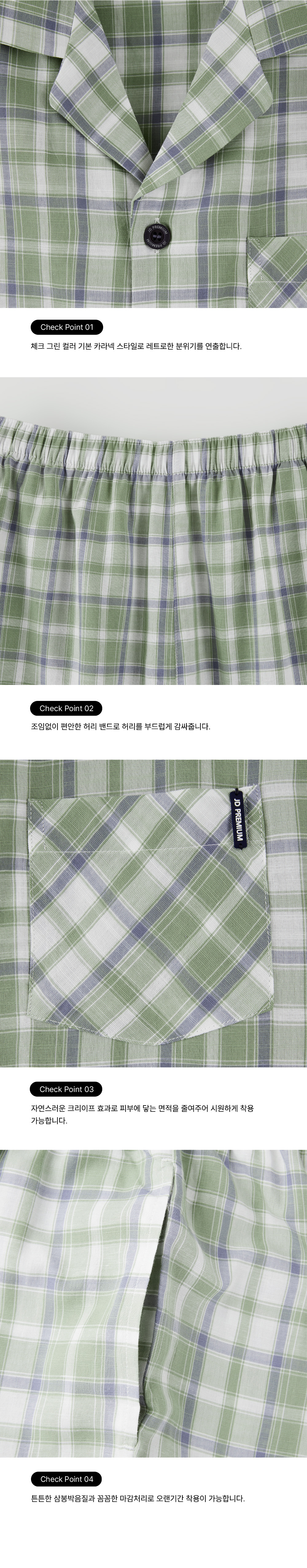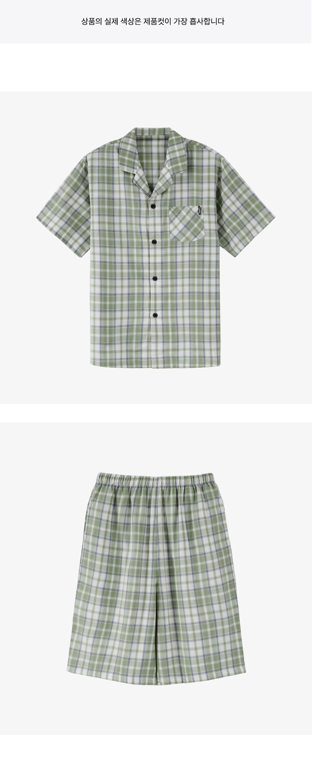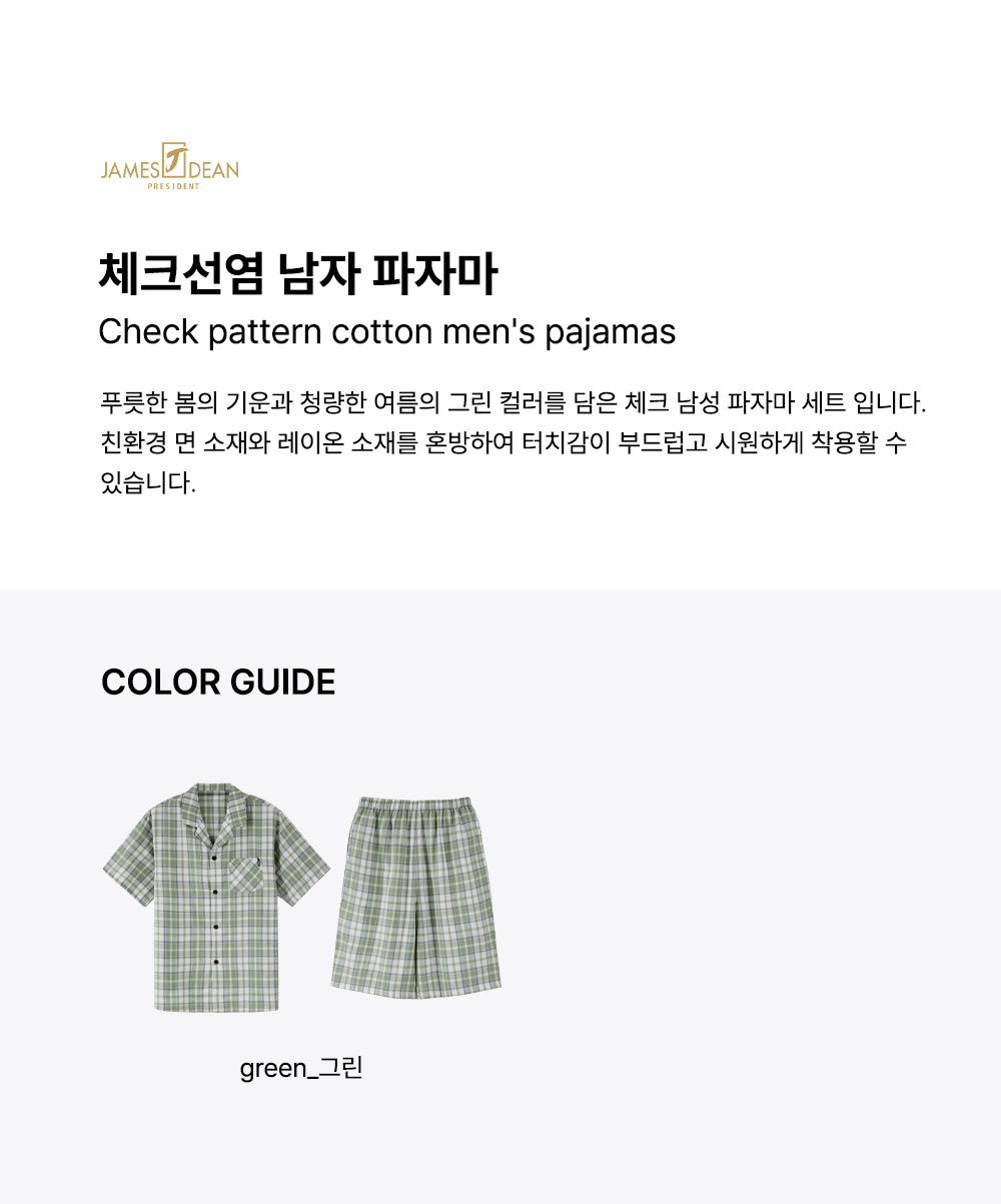 푸릇한 봄의 기운과 청량한 여름의 그린 컬러를 담은 체크 남성 파자마 세트.