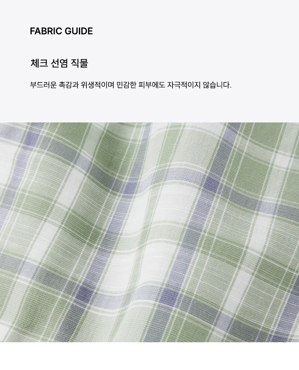 친환경 면 소재와 레이온 소재를 혼방하여 터치감이 부드럽고 피부가 민감한 분들도 착용하기 좋습니다.